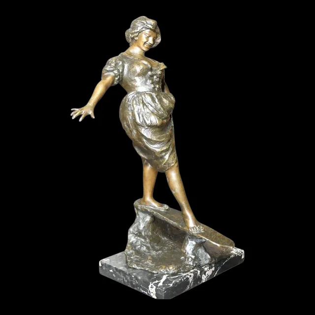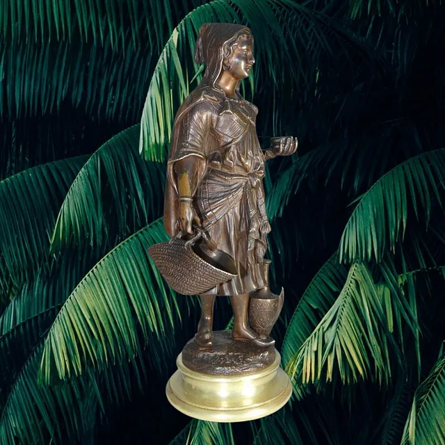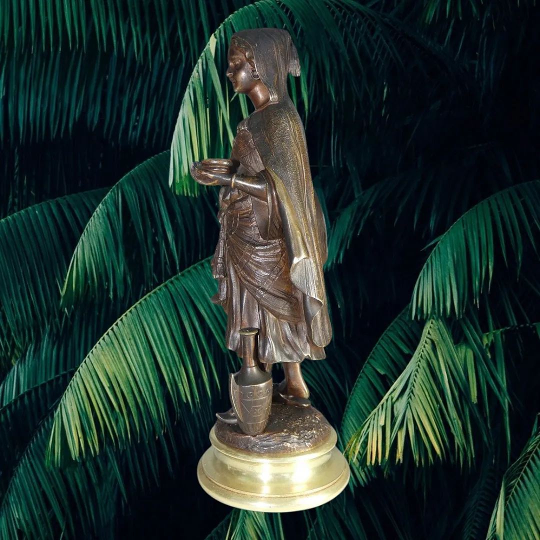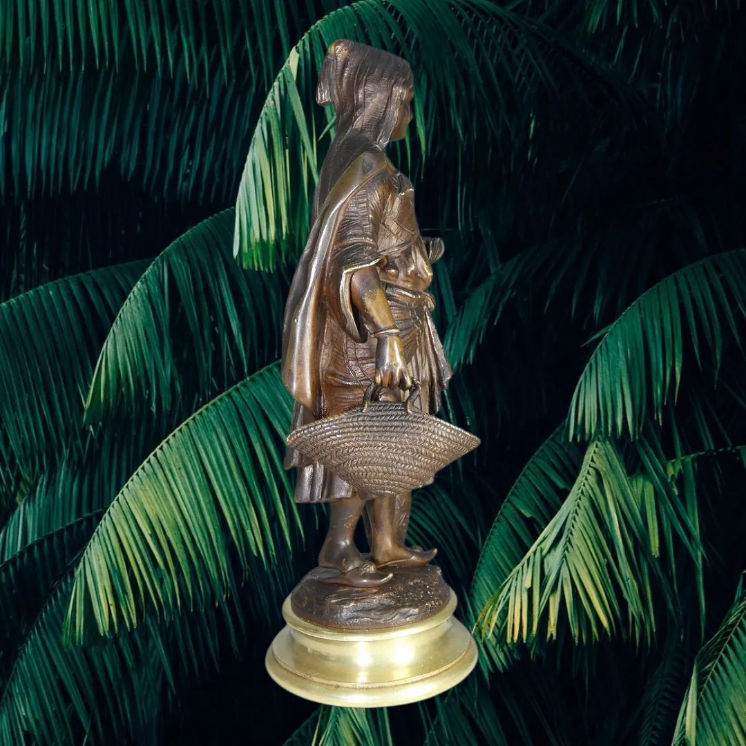 Bronze Orientaliste 19ème siècle représentant une jeune femme au panier