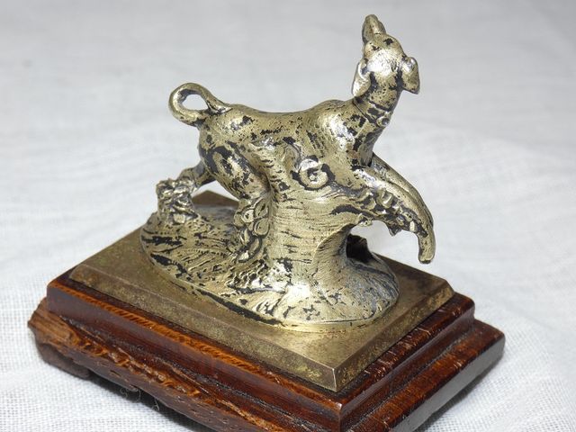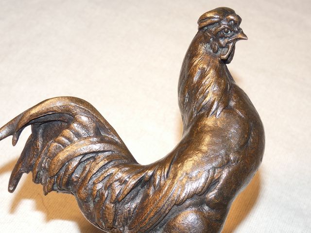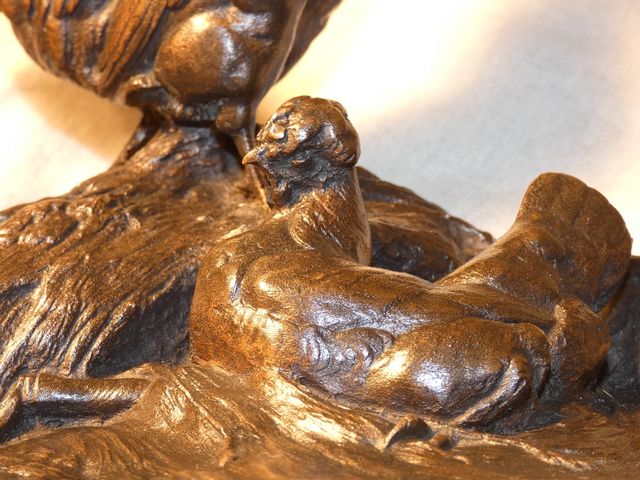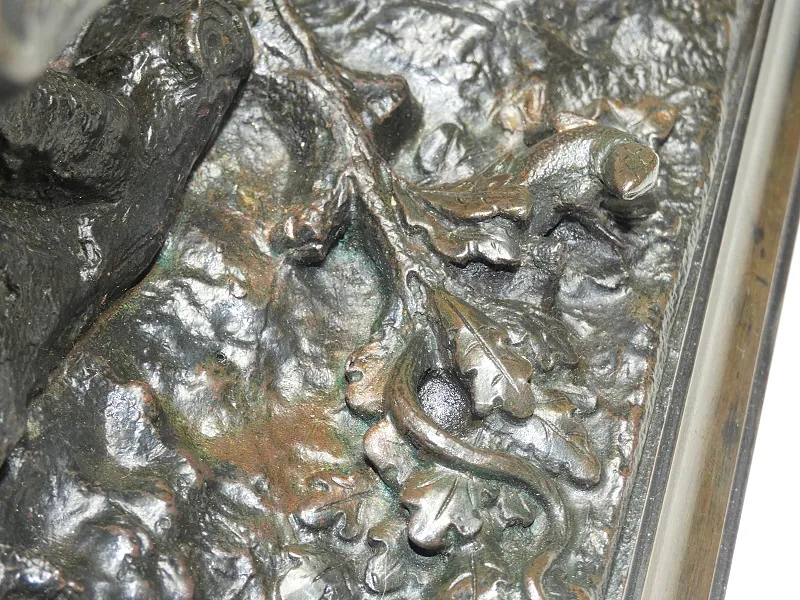 Belle et profonde ciselure, très belle patine brune nuancée vert, belle attitude très vivante