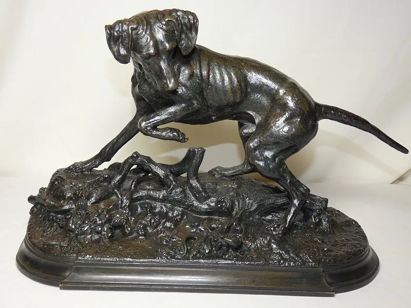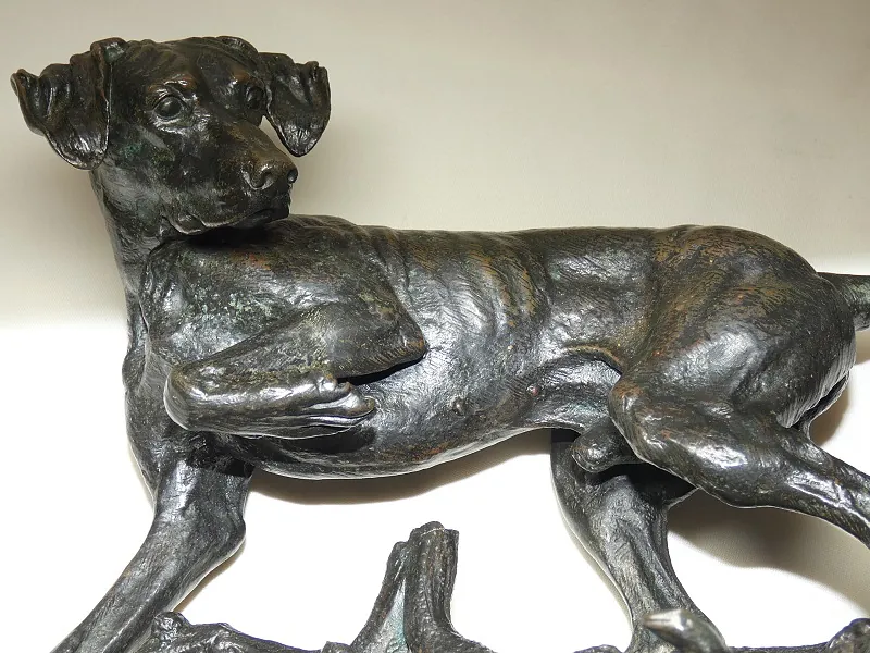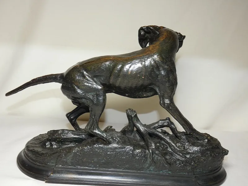 J. MOIGNIEZ bronze 19ème "braque à l'arrêt sur un lézard"